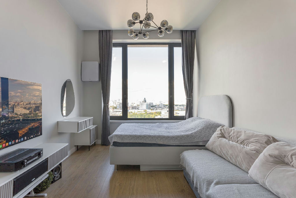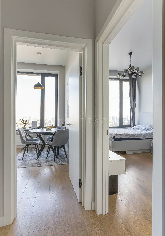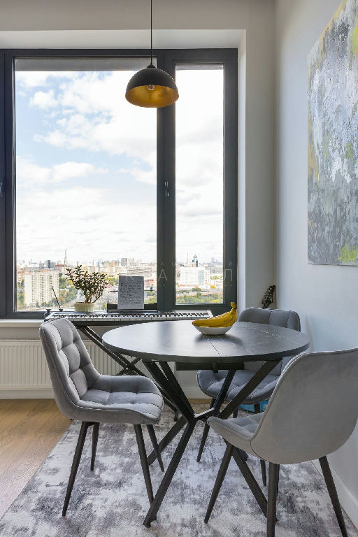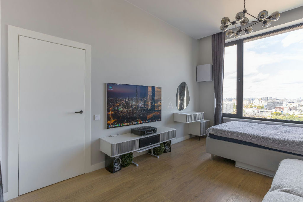 Просторные апартаменты на высоком этаже в современном ЖК бизнес-класса. Огромные панорамные окна открывают захватывающий вид на Москву и Москву-реку, наполняя квартиру светом и создавая особую атмосферу.