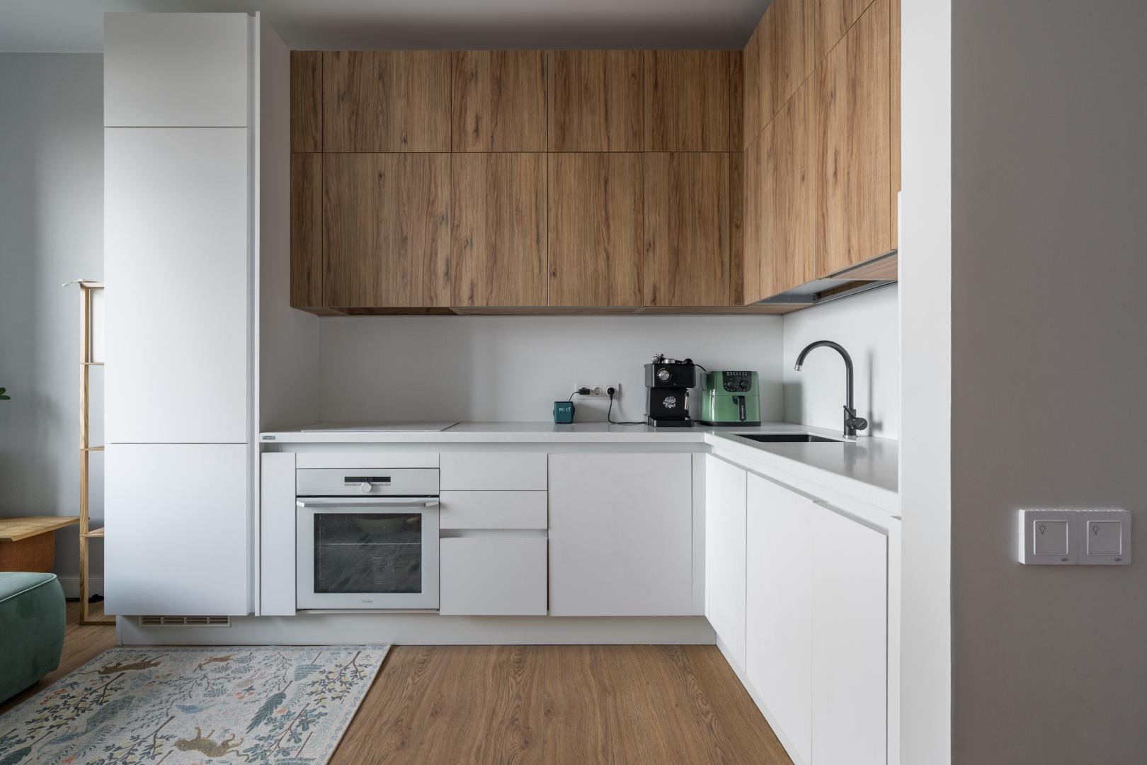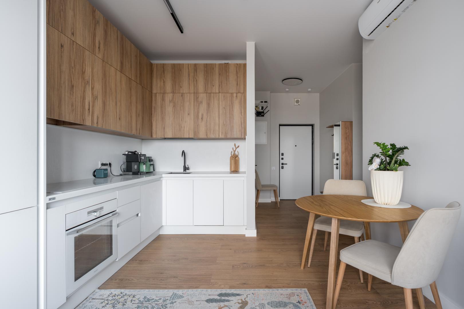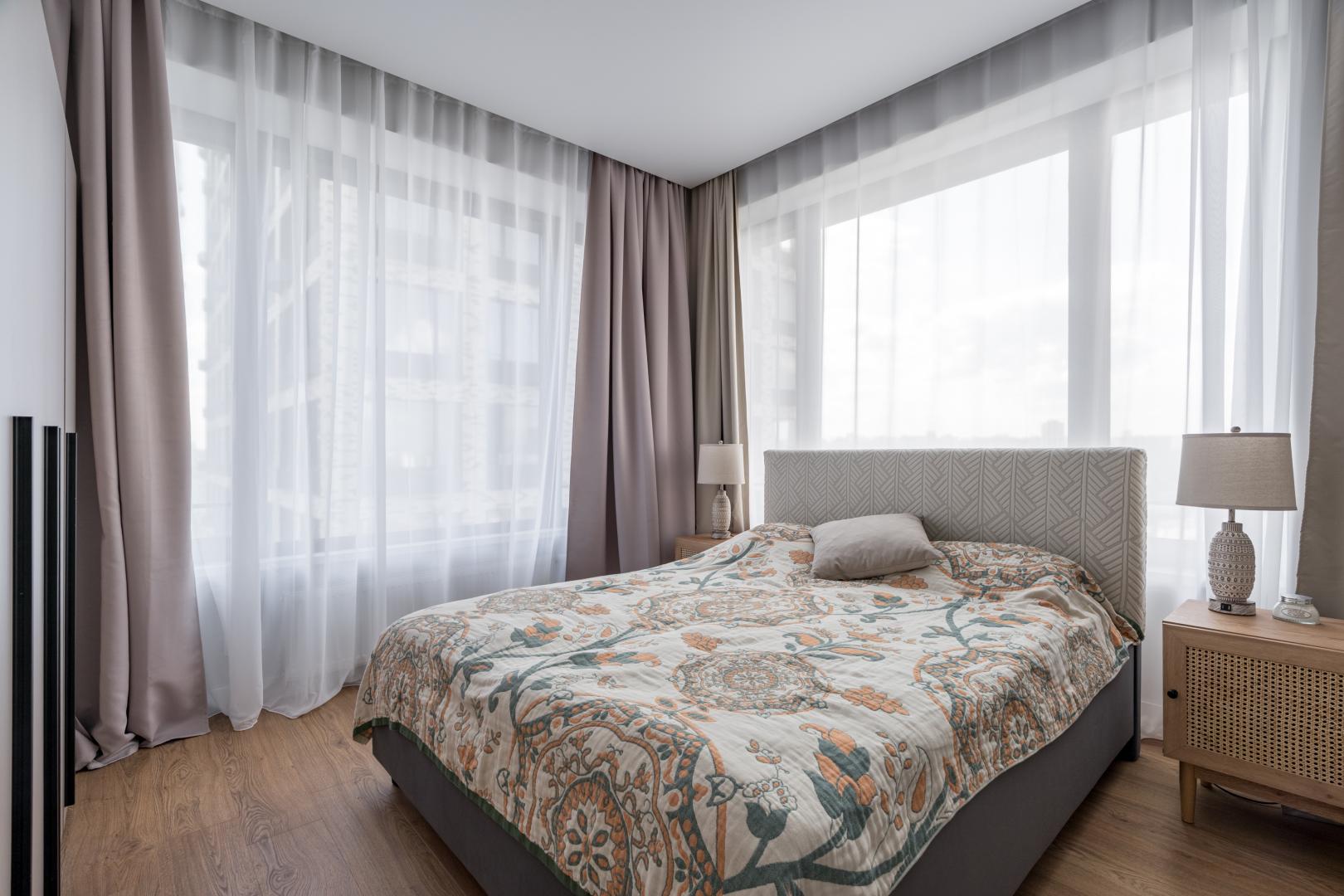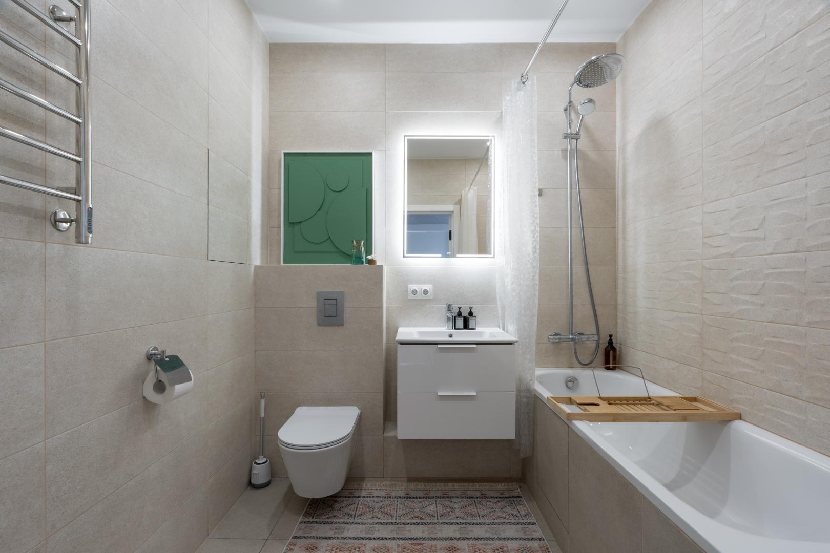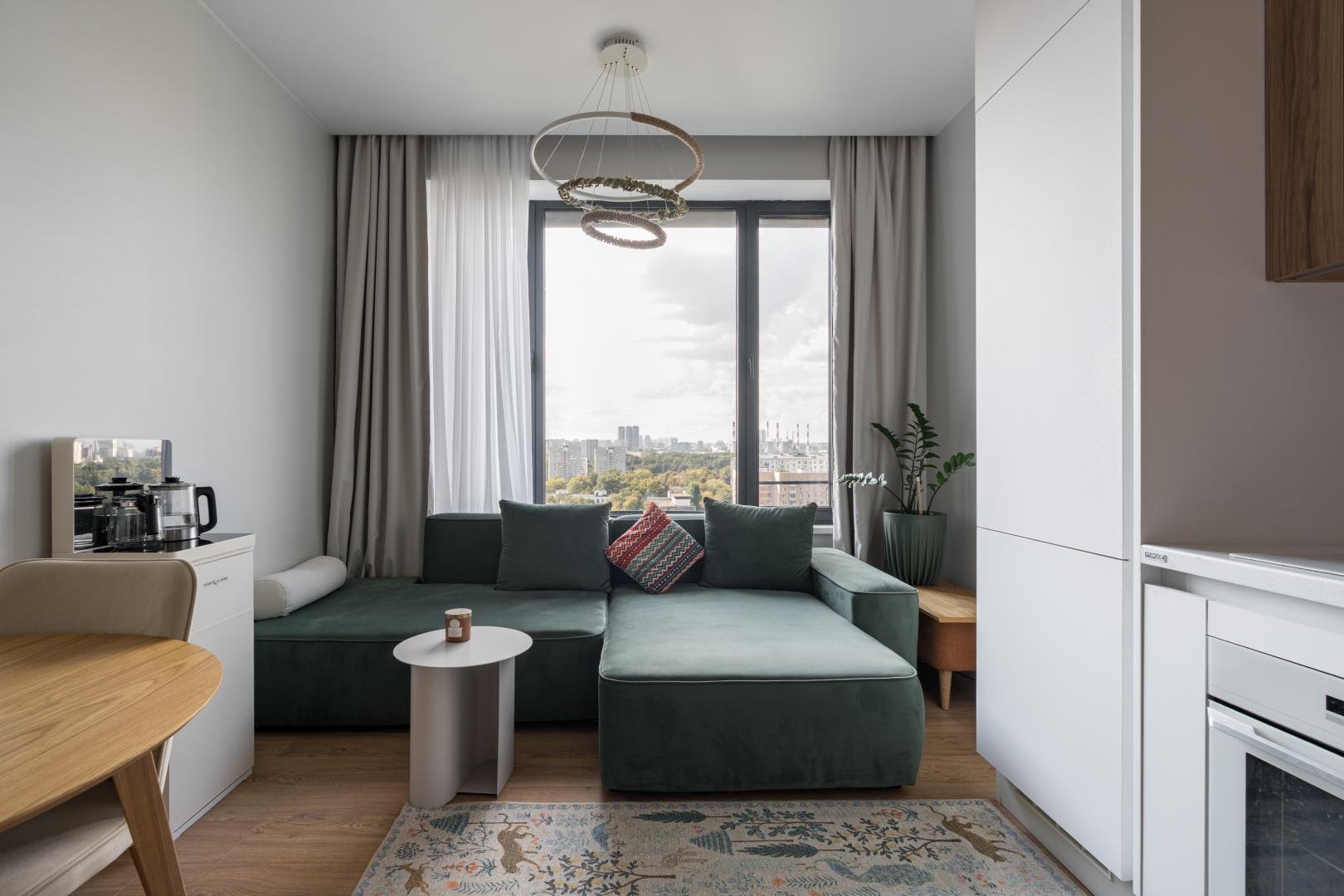 В отделке апартаментов использованы только современные, высококачественные и экологичные материалы. Апартаменты укомплектованы всей необходимой мебелью(изготовленной под заказ) и техникой ведущих производителей для комфортного проживания(много пространства для хранения вещей).